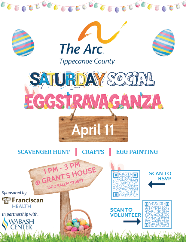 This month’s Saturday Social, an Eggstravaganza themed event, will be held on Saturday, April 11th at 1PM at Grant's House. There will be crafts, games, snacks, prizes, and more!